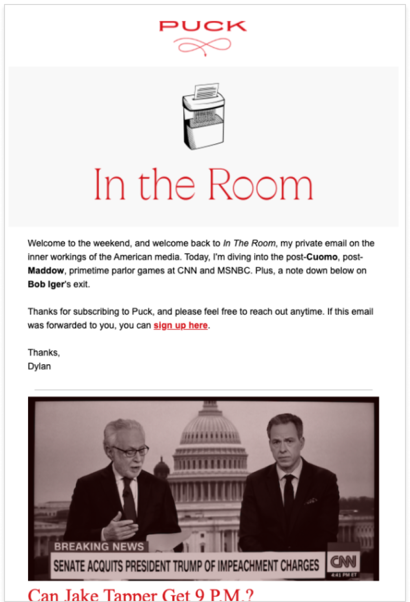 Ace media reporter Dylan Byers brings readers into the C-suite as he chronicles the biggest stories in the industry: the future of cable news in the streaming era, the transformation of legacy publishers, the tech giants remaking the market, and all the egos involved.